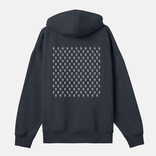 Vitt Logo Mönster Bak Boxy Hood | Svartgrå
