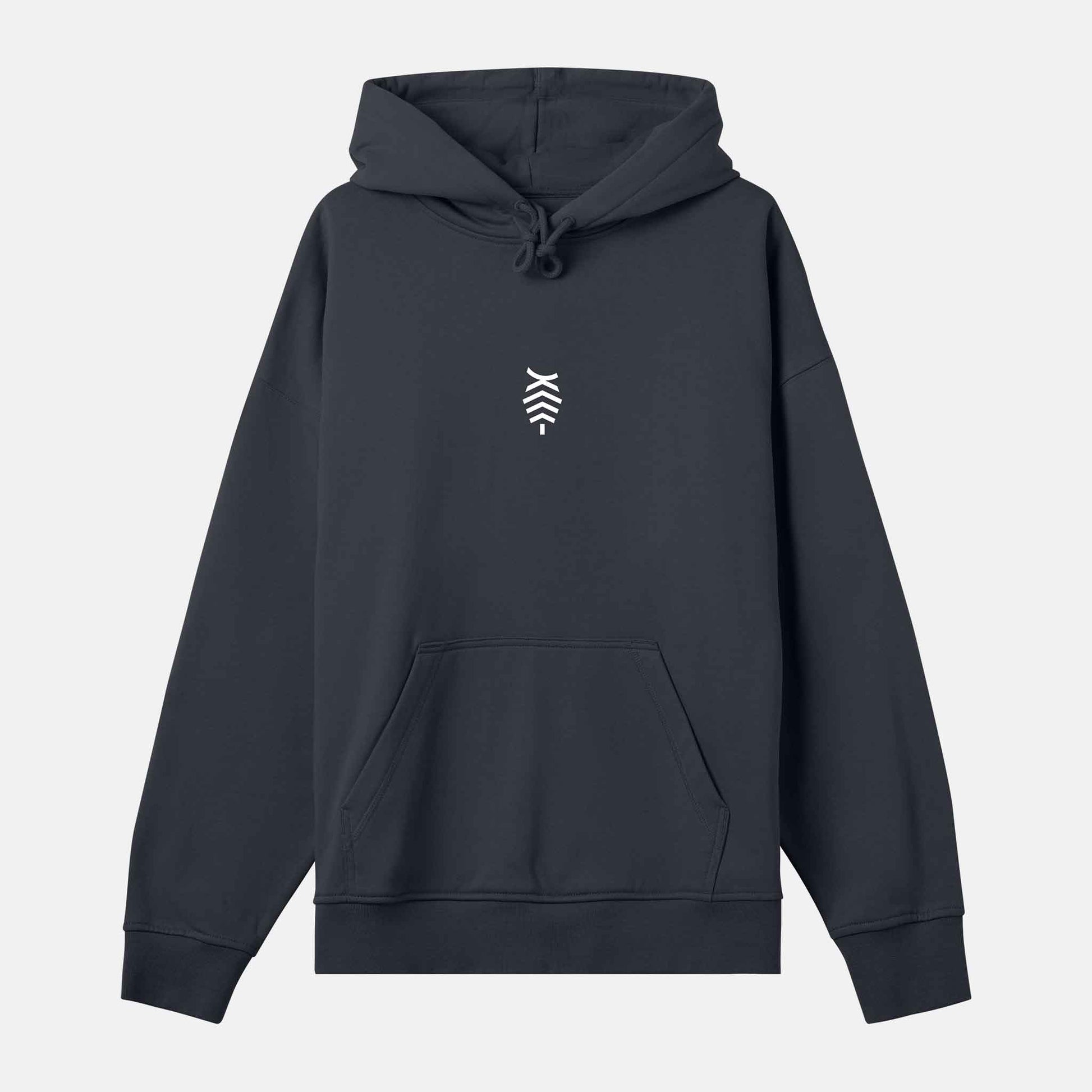 Inlandet Vit Logo Boxy Hood | Svartgrå
