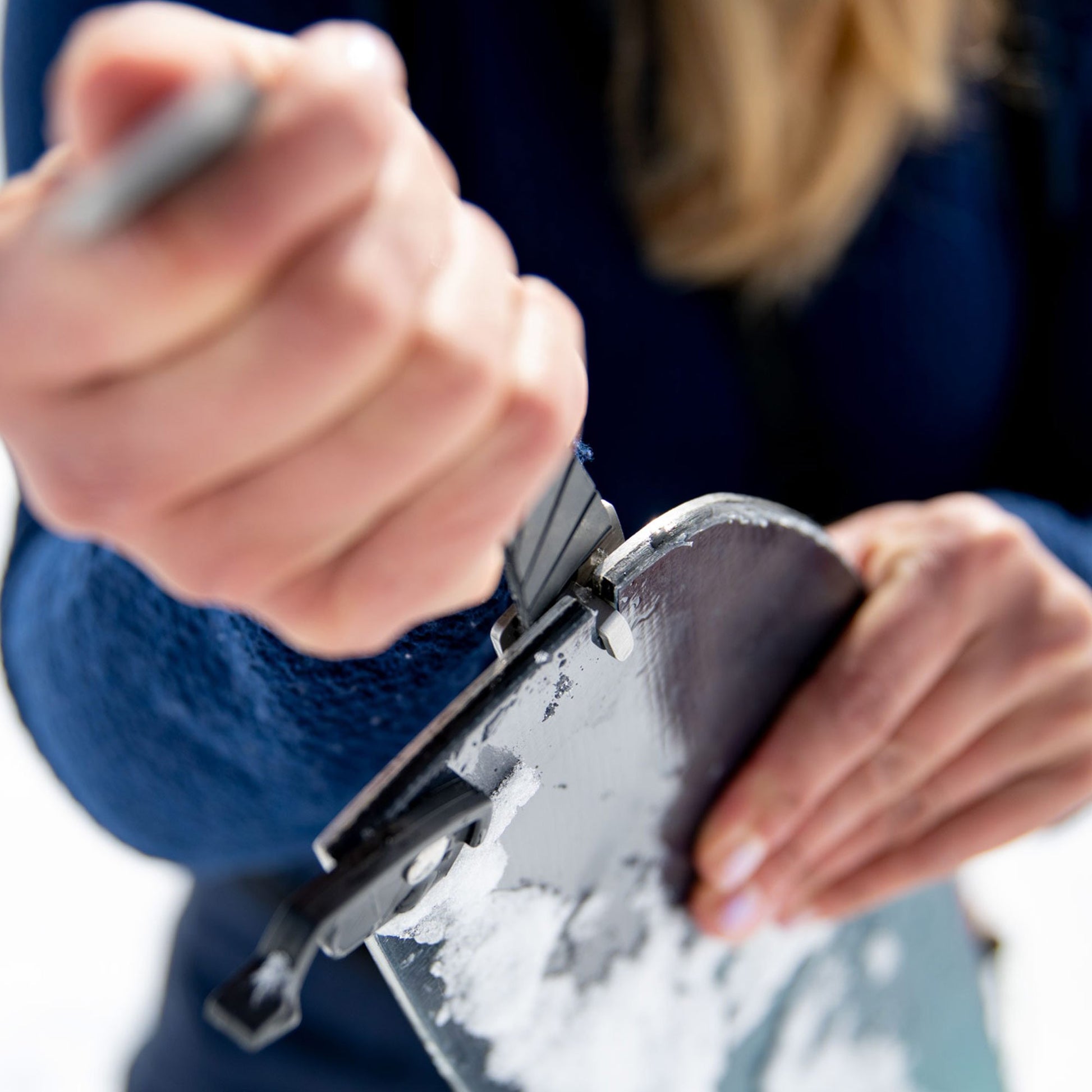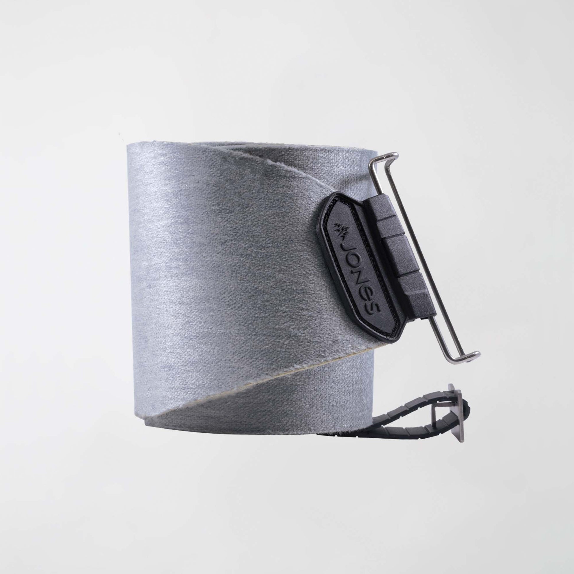 The Nomad skin fibers are 70% Mohair and 30% Synthetic Nylon. The natural mohair fibers deliver exceptional glide in any snow condition because they remain soft and flexible at any temperature. The nylon fibers provide extra traction when the skin track gets steep or icy and improved durability over 100% Mohair skins. Nomad skins are PFC-free and are coated with Bluesign-approved EVER DRY 3.0 Anti-glopping treatment to improve performance in wet snow. Jones Nomad PRO Skins are also laminated with RUBBER SAFER SKIN backing. This rubber layer keeps the skin from absorbing water and makes the skins easier to pull apart. Nomad skins are available in two models: Trim-To-Fit with Universal Tail Clip and Pre-Cut with Quick Tension Tail Clip. The Quick Tension Tail Clip adjusts in seconds, provides the perfect skin tension and is compatible with all Jones splitboards 2016 and newer.