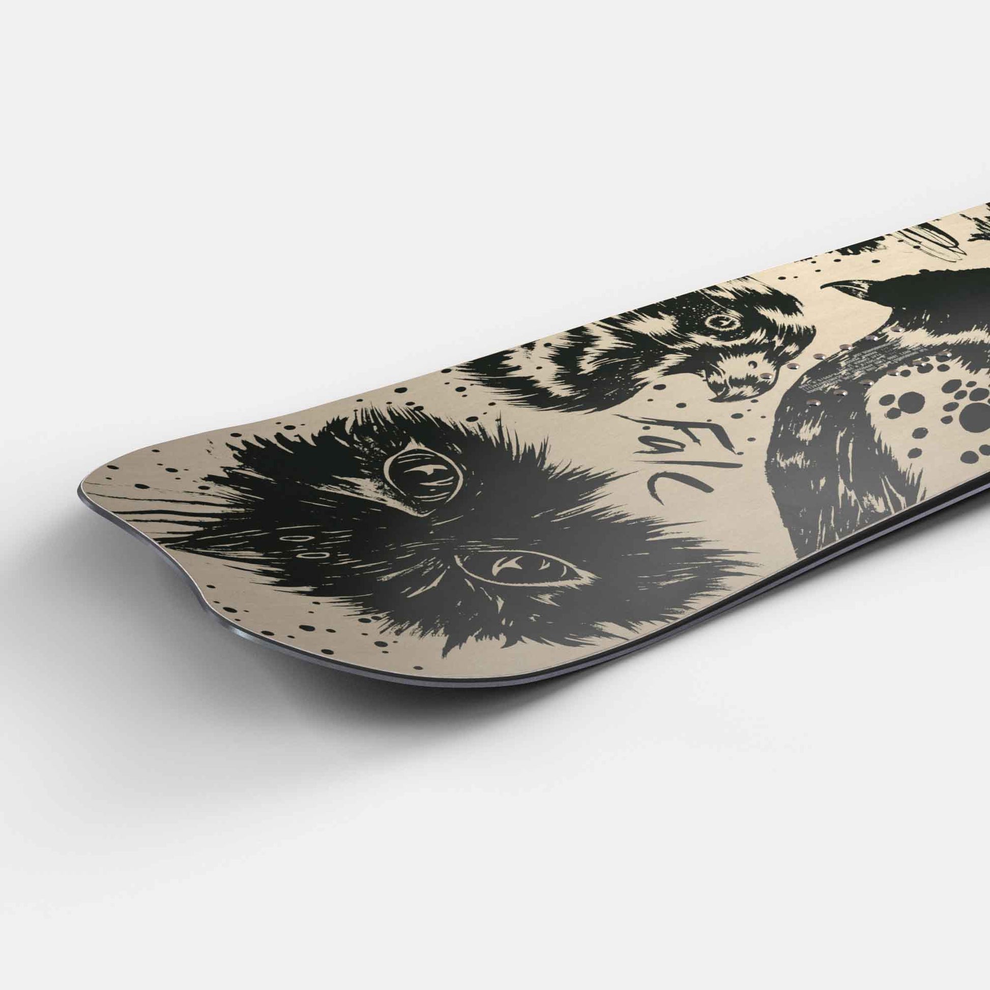 Falc är en snabb freestyle-bräda som kan hantera hela berget och dess olika åkmöjligheter. Från höga och branta bergssidor till lekfulla sidohopp, stora hopp och back country-språng. Den unika formen är designad med en tajt svängradie för snabba och kvicka svängar vid höga hastigheter. Den speciella camber-profilen, med inlägg kring nos och tail, låter dig lägga tryck där det behövs för maximal belastning och snabb popp. Kärnan är tillverkad av lätt och premium trä, och ett träfaner på toppen motverkar vibrationer vid höga hastigheter.